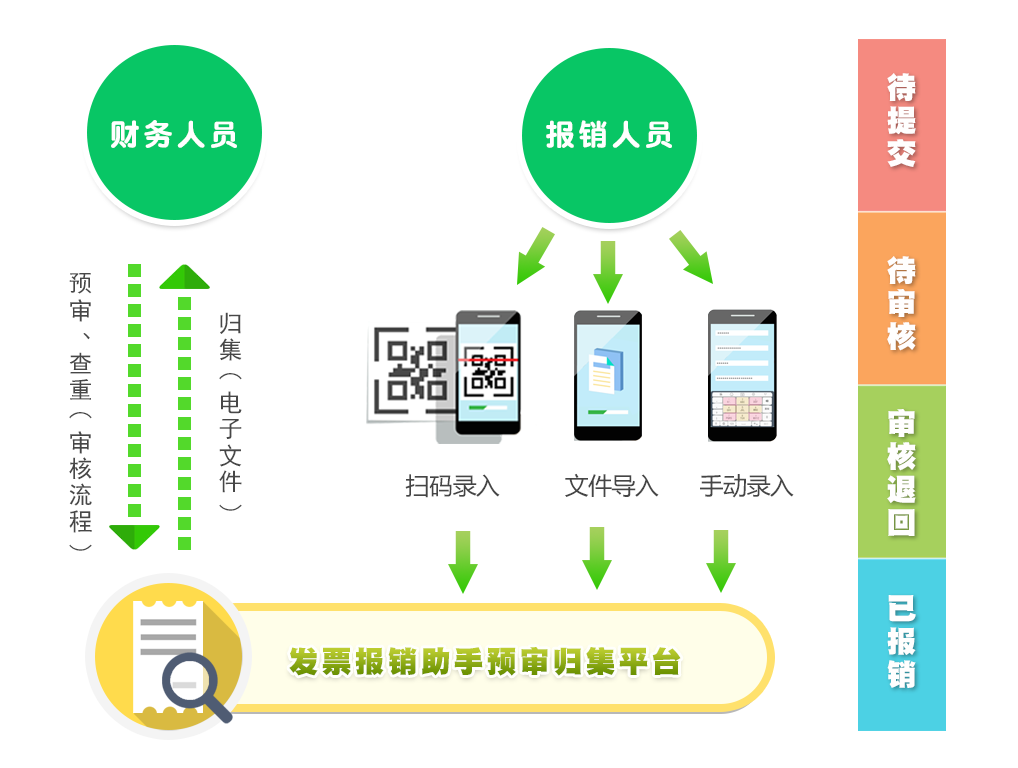 发票报销助手系统,“化繁为简,不负重托”,全面解决了中国广大企事业单位中员工自行打印的电子发票查重、真伪查验、预审、电子版凭证归集(归档)等难题,系统满足国家财政部2020年3月31日公布的《财政部国家档案局关于规范电子会计凭证报销入账归档的通知》要求,有效降低财务风险,是互联网+电子发票报销查重/查验/预审/归集(归档)的得力助手。